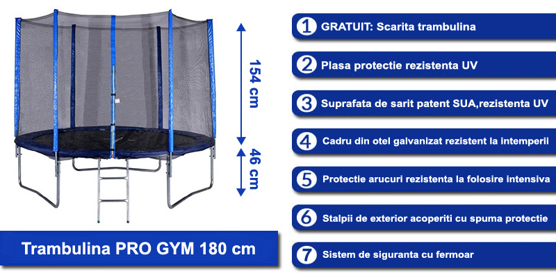 Trambulina Pro Gym, diametru 180 cm, scara si protectii incluse